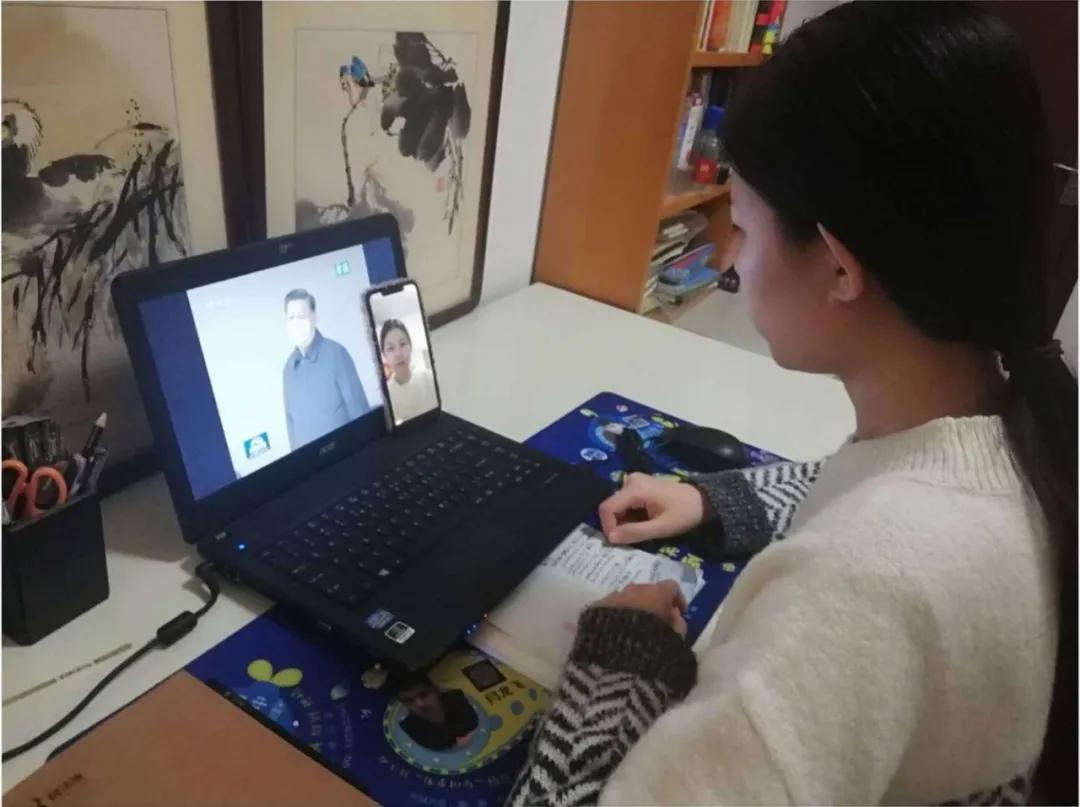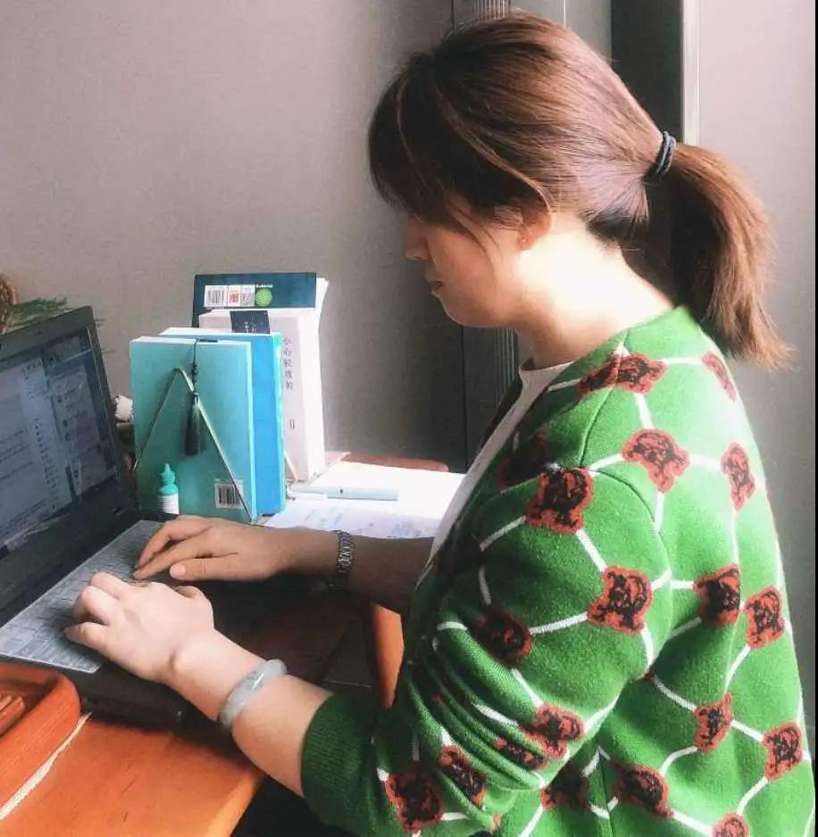 | 辅导员段婧边安抚孩子边进行学习疫情信息统计 |