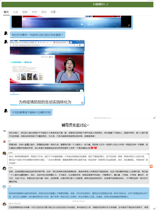 直播结束后,信息与工程学院辅导员采取班会的形式与同学们展开了在线讨论。