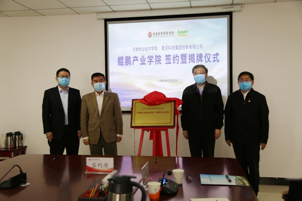 仪式上,罗士喜、冯武分别代表学校和黄河科技集团创新有限公司签订合作协议;刁玉华、冯武、穆瑞杰、罗士喜共同为“鲲鹏产业学院”揭牌。