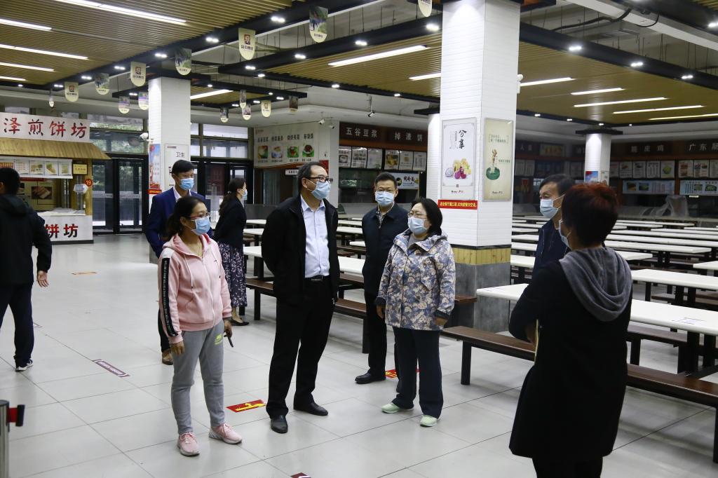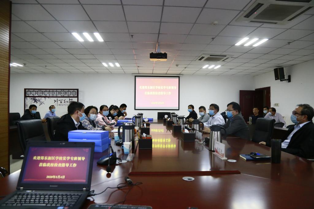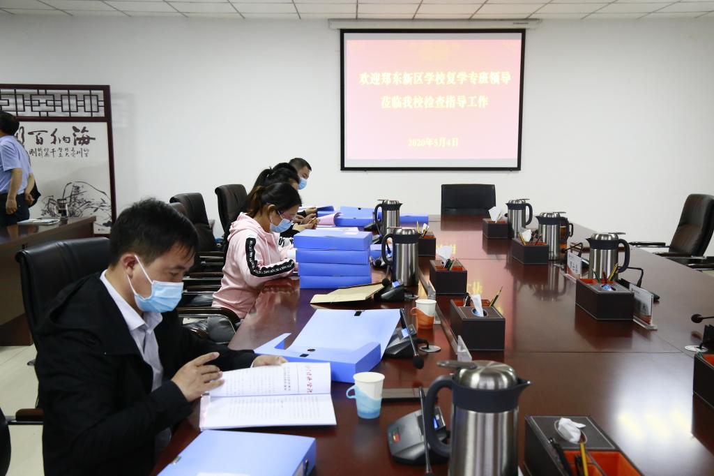 5月4日下午,由郑东新区教文体局麻玖玲一行6人组成的“五员专班”,到威尼斯官网龙子湖校区督查返校复学准备工作,校长罗士喜,校党委副书记李俊杰、李波,副校长张伟、杨宝进和学校防控办各工作组负责同志陪同检查。