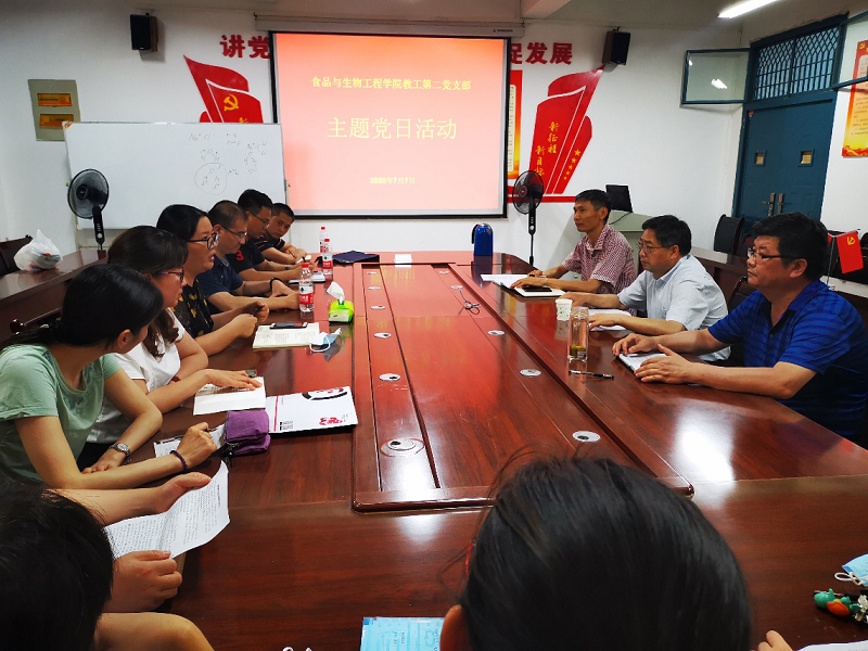 7月7日,食品与生物工程学院教工第二党支部在生工组团A-426开展了以“牢记初心使命 争当出彩先锋”为主题的党日活动,庆祝中国共产党成立99周年。校长罗士喜以普通党员身份参加了此次党日活动。