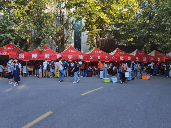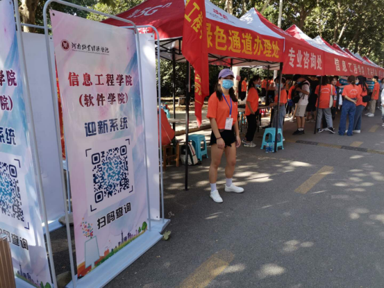 迎新现场,各学院推陈出新,积极展示学院特色,迎接新生到来。