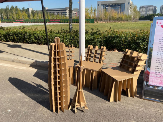 包装与印刷工程学院制作的瓦楞纸凳极大地调动了新生们对学科专业探索的热情。