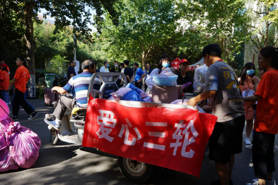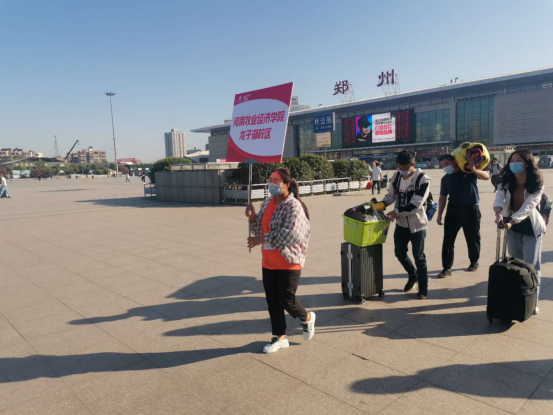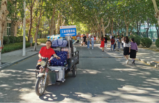 工商管理学院全院师生齐上阵,为新生搬运行李。