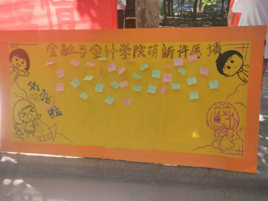 金融与会计学院准备了新生寄语板,记录新生们的初心与理想。