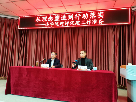报告中,罗士喜强调,全体教师要坚定信念,热爱职业、热爱学生、热爱学校,以饱满的热情和朝气迎接学校本科教学工作合格评估,推动教学、学风建设等各项工作再上新台阶;要立足岗位,认真学习评估指标体系,将7个一级指标、20个二级指标、39个观测点学深悟透,内化于心,外化于行;要回归本位,对标对表,真做真干真研究,对照问题,真抓真改真落实;要以学生为中心,促进学生全面发展,共同实现专业人才培养目标;要明确办学定位,理清思路,总结成绩,凝练学院特色,突出专业优势。