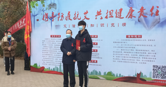 11月30日、12月1日分别在英才校区、龙子湖校区、北林校区组织开展了签名仪式、发放健康教育材料、有奖答题、现场咨询、现场检测等户外宣传活动,发放宣传材料、健康教育处方3000余份、现场咨询1000余人次、有奖答题300余人次。校党委书记穆瑞杰、副书记李波、副校长张卫宪,宣传部、学工部、校团委、学院负责人分别参加各校区户外宣传活动,副校长张卫宪为获奖者颁发了证书。参加活动的领导不畏严寒、冒着雨雪与学生面对面交流,发放宣传教育材料、带领学生签名铭志:“携手防疫抗艾 共担健康责任”。活动由校医院主办,惠济区疾控中心、宣传部、学工部、校团委、各学院、校健康协会共同参与。