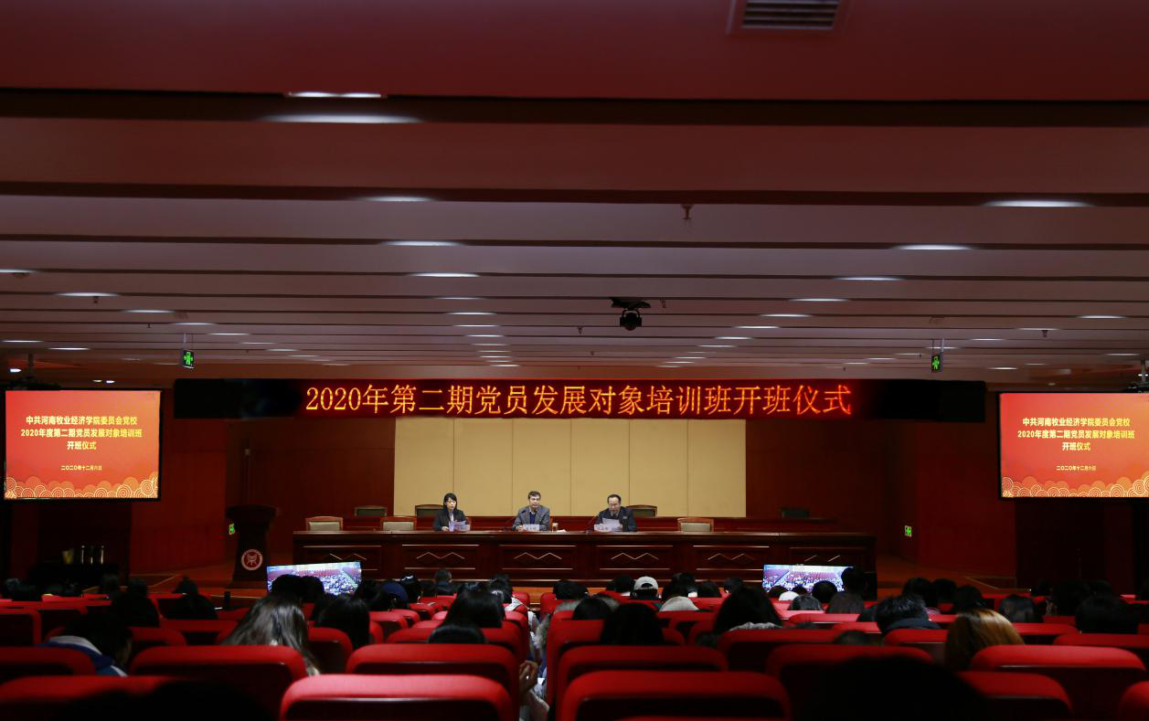 12月6日,学校2020年第二期(总第4期)党员发展对象培训班分别在龙子湖校区图书馆一楼报告厅和英才校区学术报告厅举行。校党委委员、党委组织部部长、党校常务副校长戴天增,校党委委员、党委宣传部部长、党校副校长王凌彬出席开班仪式,校党委组织部相关人员及528名学员参加。开班仪式由刘芸主持。