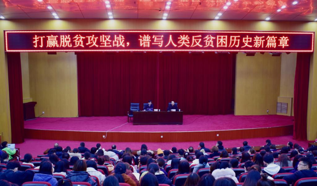 12月10日下午,校纪委书记、监察专员李中华教授在英才校区学术报告厅讲授题为“打赢脱贫攻坚战,谱写人类反贫困历史新篇章”专题党课。学校全体纪检监察干部、巡察干部,金融与会计学院、包装与印刷工程学院和信息工程学院全体师生党员聆听本次党课。本次党课由金融与会计学院党委书记陈复昌主持。