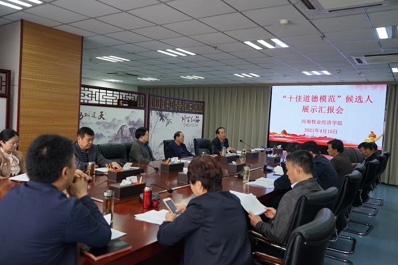 为认真贯彻落实省直文明办《关于开展第七届省直“十大道德模范”评选表彰活动的通知》(豫直文明办〔2020〕7号)精神,集中展示道德模范风采,在基层选拔推荐的基础上,4月15日上午,学校在图书馆841会议室召开了2021年“十佳道德模范”候选人展示汇报会。校党委副书记、校文明委副主任李俊杰出席展示汇报会,校文明委成员参加了会议,从全校各基层党委(基层党总支)脱颖而出的二十余名候选人参与了展示汇报。会议由校党委委员、党委宣传部部长王凌彬主持。