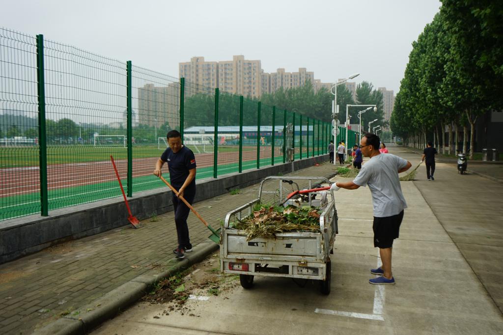 7月23日上午,80余名志愿者在龙子湖校区冒着小雨开展清扫校园活动,他们中有留校学生,有从北林、英才校区赶来的党员干部,有放假在家的教师子女及家属,志愿者们自发分成三个小组,有的扫落叶、有的排积水、有的清淤泥、有的拔草、有的装运垃圾……虽然年纪不同、职业不同,但他们都有共同的愿望和目标——通过志愿服务,让校园尽快恢复温馨整洁的环境面貌。