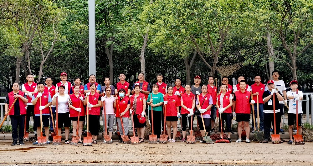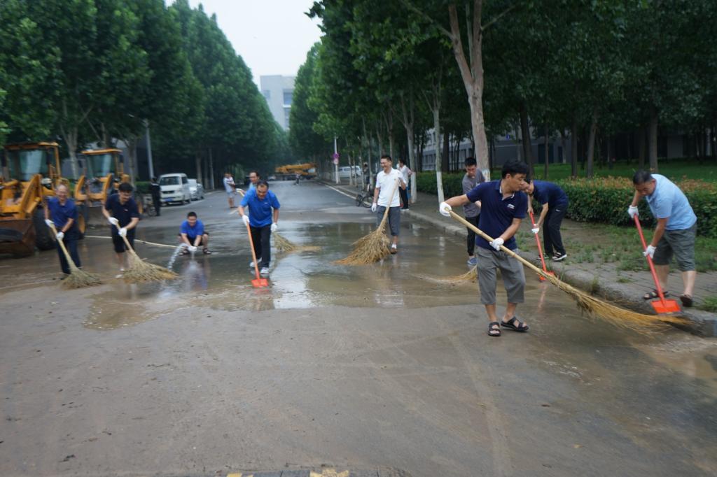 7月22日下午,随着路面水位逐渐退去,来自学校各部门的40余名志愿者走出校园,来到文苑北路开展路面清淤、垃圾清理等力所能及的志愿服务活动,志愿者们身着“红马甲”,头戴小红帽,手拿铁锹、扫帚等工具,分工协作,有的沿路清淤,有的清扫地面的垃圾、杂物,有的清理残留的积水……助力大家尽快恢复生产生活秩序,形成了防汛抢险、携手同心保卫家园的精神力量。
