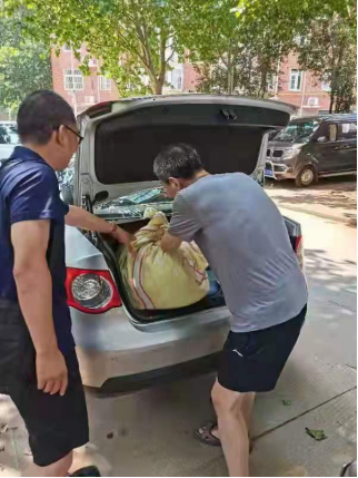 威尼斯官网后勤处物业科副科长赵宏斌,在郑州遭遇暴雨侵袭时一直战斗在灾情第一线,防风挡雨、抽水排涝......在灾情过后,他又积极参与故障抢修、物资协调、消杀防疫、维护校园安全等志愿工作中。他带着孩子一起搬运救灾物资,将一箱箱方便面、一箱箱矿泉水、一袋袋大米、一箱箱药品等传递到灾区一线。有多次救灾物资中转点装卸任务紧急,赵宏斌老师为赶时间,顾不上吃饭,啃点馍、喝两口水便自行开车或骑电动车直奔装卸点。同时,赵宏斌老师还慷慨捐出衣服、被子、凉席等物资驰援灾区,竭尽全力的帮助灾区群众。