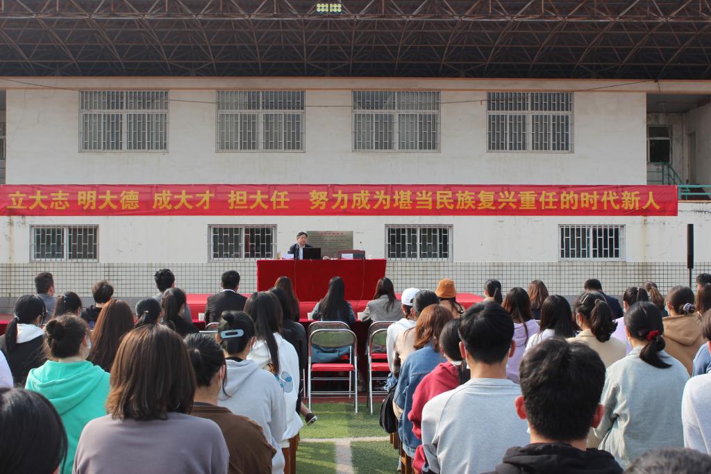 近日,省委宣讲团成员、校长罗士喜教授以《立大志 明大德 成大才 担大任 努力成为堪当民族复兴重任的时代新人》为题,在英才校区田径场为2021级新生作了一场精彩的党史学习教育专题报告,英才校区各学院党委副书记,团委书记、副书记,辅导员参加了报告会。报告会由学工部副部长胡卫东主持。
