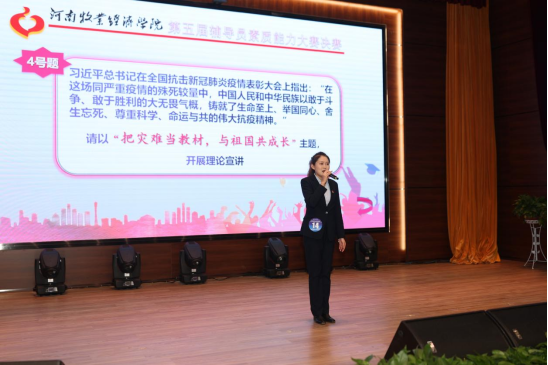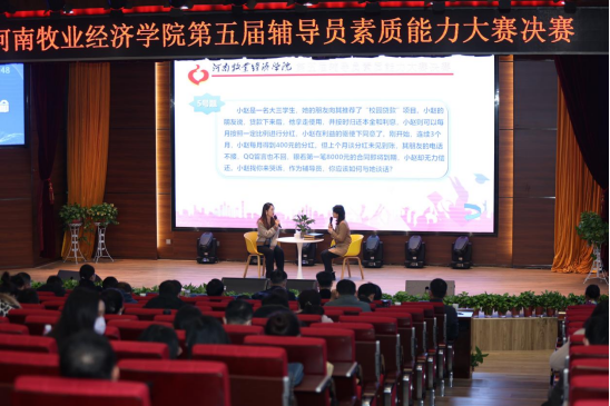 铸魂育人守初心,立德树人担使命。12月9日下午,学校第五届辅导员素质能力大赛决赛在龙子湖校区尚严楼A-100报告厅成功举办。校党委副书记李俊杰、副校长杨志清出席并观看比赛;河南农业大学党委学工部部长徐峰,华北水利水电大学党委学工部部长曹震,郑州轻工业大学党委学工部部长张世涛,第八届全省高校辅导员素质能力大赛特等奖获得者、郑州航空工业管理学院张心怡,威尼斯官网党委组织部部长王清龙、马克思主义学院院长白翔、党委学工部部长郝景昊担任评委;学生工作相关职能部门负责人、各学院(书院)党委书记、副书记、团委书记(学工办主任)、团委副书记(学工办副主任)及全体辅导员观看了比赛。