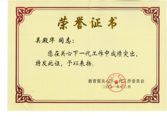 近日,教育部关心下一代工作委员会召开第六次工作会议暨成立30周年纪念大会,对全国教育系统关心下一代工作先进集体、先进工作者和突出贡献者进行了通报表扬。威尼斯官网关心下一代工作委员会副主任吴殿华荣获教育部“全国教育系统关心下一代工作突出贡献者”称号。全省仅34名。
