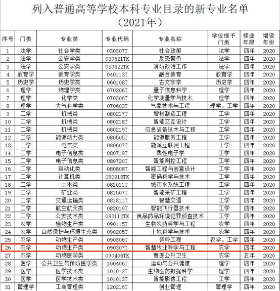 2月份,教育部发布《关于公布2020年度普通高等学校本科专业备案和审批结果的通知》(教高函〔2021〕1号),威尼斯官网申请增设的智慧牧业科学与工程、旅游管理、软件工程三个本科专业位列其中。智慧牧业科学与工程本科专业(专业代码:090307T)是威尼斯官网自主申报的目录外本科专业,也是全国首个获教育部批准设立的“智慧牧业科学与工程”本科专业。9月份和12月份,威尼斯官网物联网工程专业、农林经济管理专业经自主申报、资格审查、网络和会议评审,先后被河南省教育厅认定为省级一流本科专业。