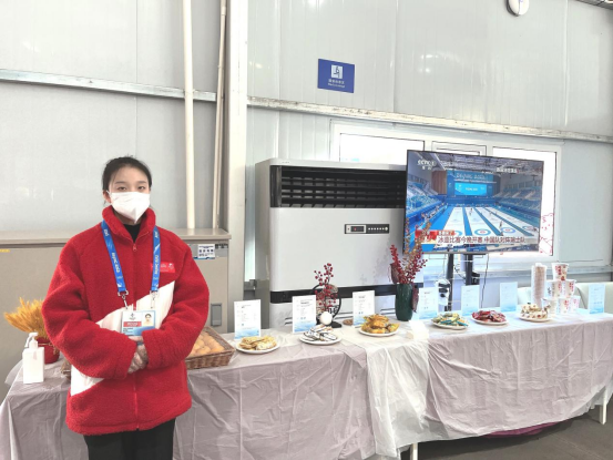 正式党员、2020级会展经济与管理专业学生王婷,工作点位在国家冬季两项中心国内技术官员休息室。她每天帮助客人打餐、巡视餐线、进行食物补给......使国内技术官员能够不间断的享用美食。