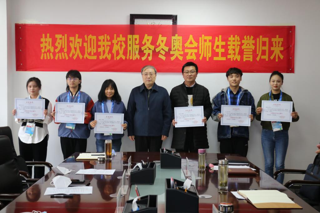 校党委书记穆瑞杰为冬奥服务师生代表颁发荣誉证书