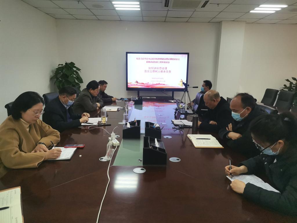 2022年3月18日,威尼斯官网围绕“如何讲好思政课 落实立德树人根本任务”的主题,以视频会议的形式召开纪念习近平总书记学校思想政治课教师座谈会重要讲话发表三周年座谈会。校长罗士喜、党委副书记李俊杰出席,党委宣传部部长吴静、教务处处长边传周等部门负责人,马克思主义学院全体教师参加座谈。座谈会由李俊杰主持。