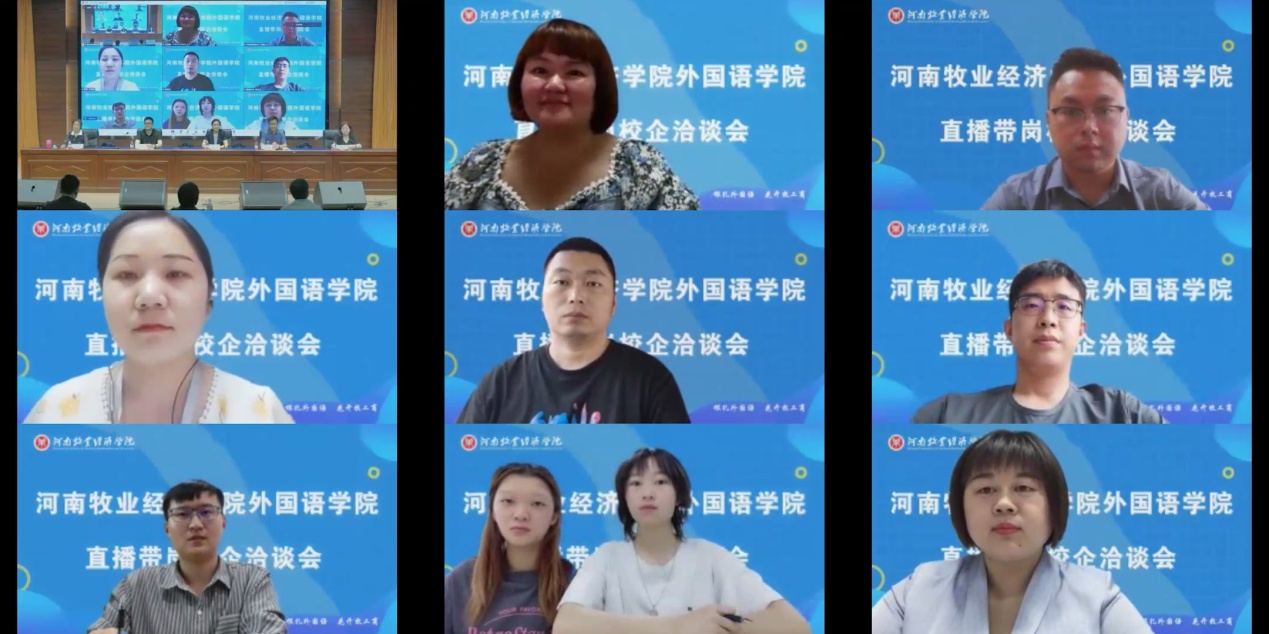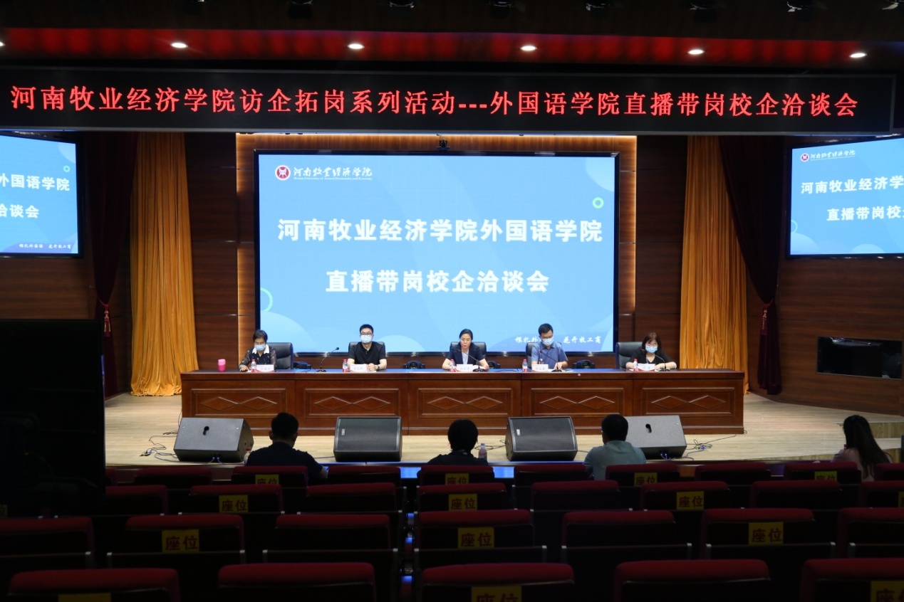 5月25日上午,外国语学院通过线上线下相结合形式召开直播带岗校企洽谈会,副校长杨志清在龙子湖校区合100报告厅出席现场会议。外国语学院领导班子成员、十二家企业参加会议。洽谈会由外国语学院院长陈延潼主持。