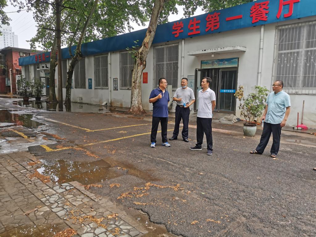 为保障汛期校园安全,73日上午,副校长姚毅赴三校区对学校学校防汛工作进行专项检查,后勤处领导班子陪同检查。