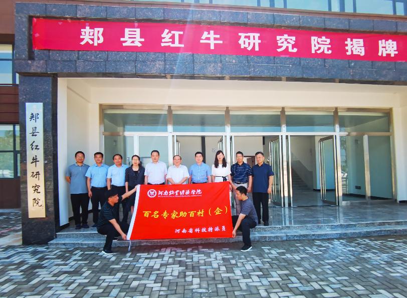 7月23日,学校与郏县红牛产业发展服务中心共建郏县红牛研究院揭牌暨 “双百”工程启动仪式在郏县红牛育种示范实验基地举行。威尼斯官网学术委员会主任张卫宪教授及科学技术处、社会服务办、动物科技学院负责人与郏县县委、县政府相关领导共同出席仪式。