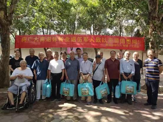 在英才校区离退休退役军人慰问座谈会上,离退休职工工作处党委书记陈进良向参加座谈会的退役军人们表示崇高的敬意和节日的问候。他说:退役军人不仅在部队期间为国防事业和军队现代化建设做出了积极贡献,转业到校后,在学校各个时期的建设发展中也发挥了重要作用,我们要学习退役军人不怕苦不怕累、无私奉献的精神,为学校的发展持续做出应有的贡献。座谈结束后,离退处全体人员与退役老军人一同齐唱军旅歌曲《咱当兵的人》并合影留念。