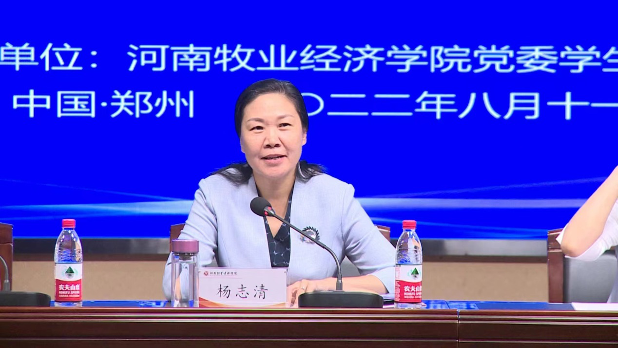 会上,杨志清为第八届全省高校辅导员年度人物提名奖获得者党美珠、第九届河南省高校辅导员素质能力大赛一等奖获得者吕元贞颁奖;校团委书记、学工部副部长杨莉宣读了《关于举办2022年辅导员素质能力作风提升培训班的通知》;动物医药学院团委副书记(学工办副主任)陈雁雪作为学员代表发言。