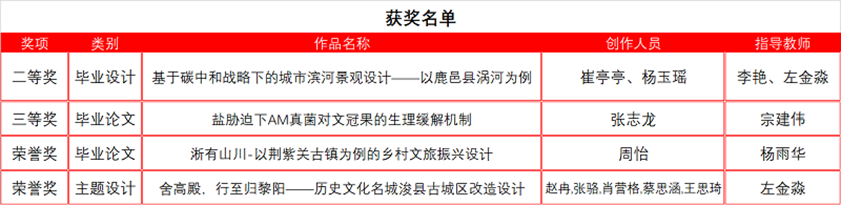 作为专业领域内最具影响力的国际赛事之一,第十三届园冶杯大学生国际竞赛共有海内外高校八千多名学子踊跃参赛。艺术学院组织师生积极备赛。经过激烈的比拼,李艳、左金淼老师指导的《基于碳中和战略下的城市滨河景观设计--以鹿邑县涡河为例》荣获二等奖;宗建伟老师指导的《盐胁迫下AM真菌对文冠果的生理缓解机制》荣获三等奖;杨雨华老师指导的《浙有山川-以荆紫关古镇为例的乡村文族振兴设计》、左金淼指导的《舍高殿,行至归黎阳--历史文化名城俊县古城区改造设计》获得荣誉奖。