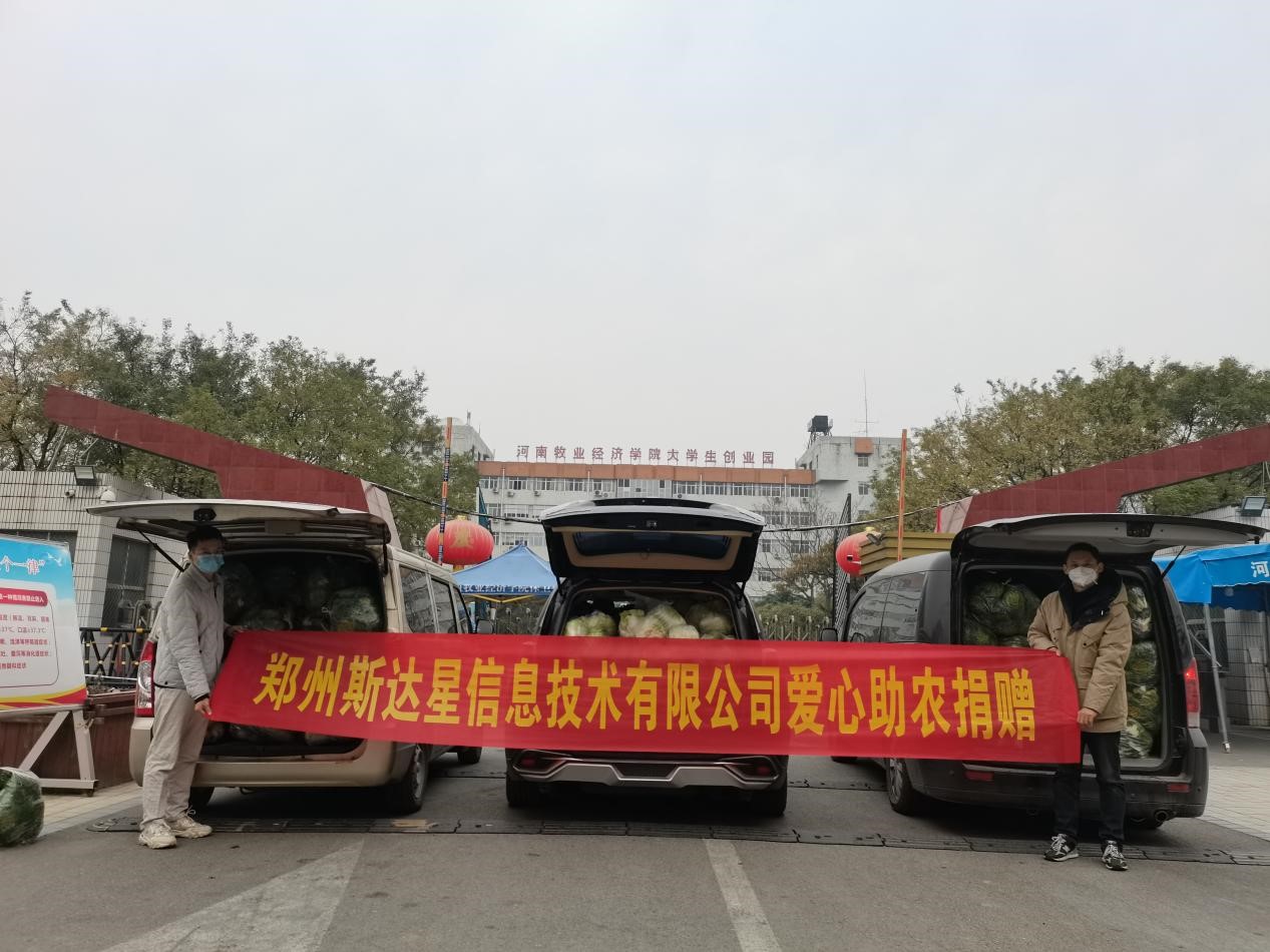 12月6日,郑州斯达星信息技术有限公司总经理的张洪卫及该司财务总监朱逸飞筹集了5000余斤“爱心菜”,支援威尼斯官网北林校区,助力校园的物资供应。副校长杨宝进代表学校接受捐赠并对校友表示感谢。守望中满是牵挂,相助中汇聚力量。校友雪中送炭,彰显了他们对学校饮水思源的深厚情谊。