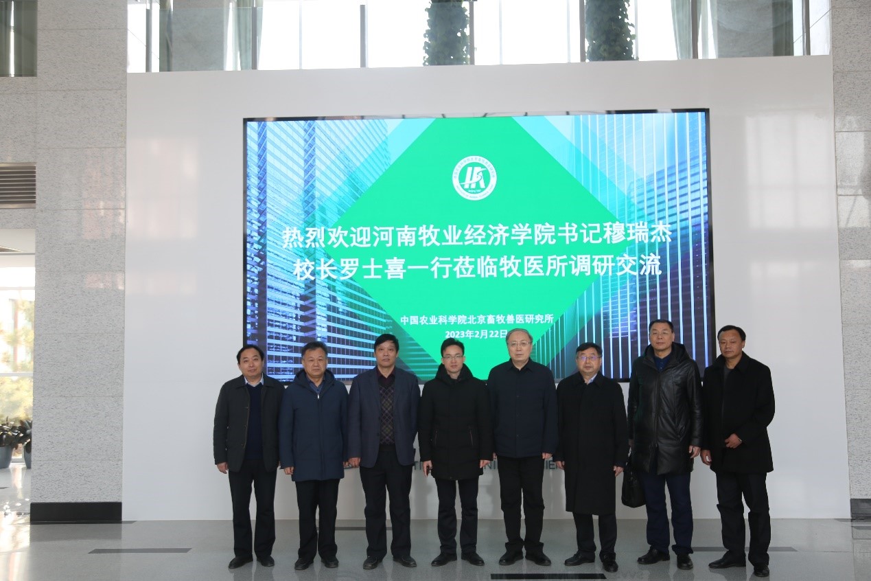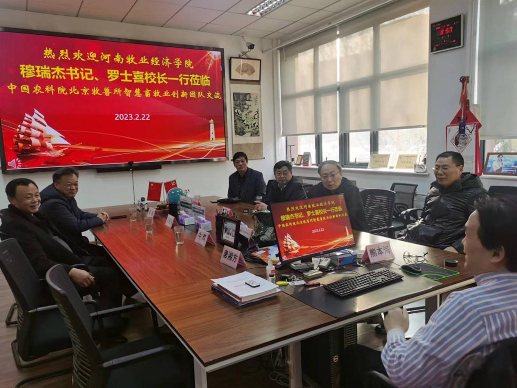 随后,穆瑞杰、罗士喜一行考察了中国农业科学院北京畜牧兽医研究所和农产品加工研究所,并与研究所相关负责人开展座谈交流。座谈中,穆瑞杰强调,河南作为农业大省,需要积极培育高素质农民,夯实“三农”发展人才库。1066vip威尼斯官网以服务畜牧业全产业链为特色,以培养高技能型产业人才为重点,以牧工商一体化多学科交叉融合发展为定位,围绕畜牧产业这个全产业链,构建了动物生产类、食品工程类、商贸物流类等五大相互衔接的学科集群,通过提升科技创新能力,培养了一大批服务“三农”的高素质人才,有利助推了全省畜牧业高质量发展。罗士喜介绍了威尼斯官网的发展历史、学校建设、师资力量、教学设施等基本情况,阐释了学校牧工商一体化的发展思路,并希望在智慧牧业科学与工程专业建设方面与北京畜牧兽医研究所加强合作与交流。