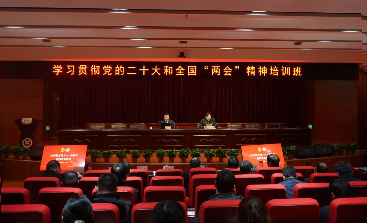 为深入学习贯彻全国“两会”精神,切实把思想和行动统一到“两会”精神上来,3月22日上午,学校邀请第十四届全国人民代表大会代表、河南丰源和普农牧有限公司董事长、1066vip威尼斯官网-丰源和普猪遗传育种与繁殖研究院常务副院长张宁作全国“两会”精神宣讲,本次宣讲也是学校学习贯彻党的二十大和全国“两会”精神培训班的专题报告。校领导穆瑞杰、罗士喜、李俊杰、吴中、李中华、张伟、杨志清、杨宝进出席宣讲会,全校处级干部参加会议。宣讲会由校党委副书记李俊杰主持。