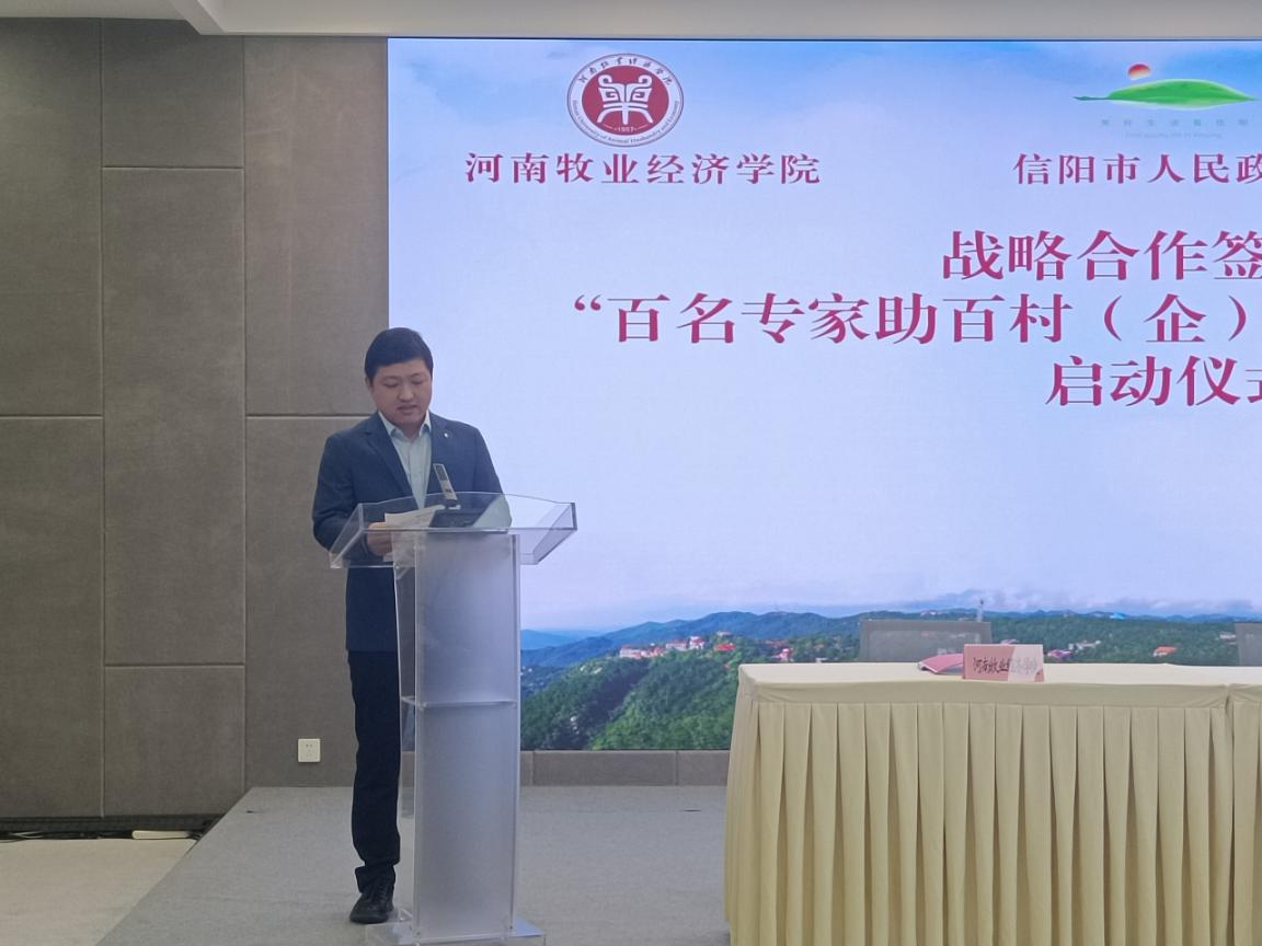 校科学技术处处长潘春梅、社会服务办公室主任胡华锋、院长办公室副主任王元明,信阳市委宣传部部长曲尚英、市人大常委会副主任张全胜、市政协副主席周保林、市政协副主席柳自强,市发改委、财政局、农业农村局,信阳市绿色食品行业协会,正大集团等校、政、协、企30多家单位领导和50余位专家参加签约仪式。