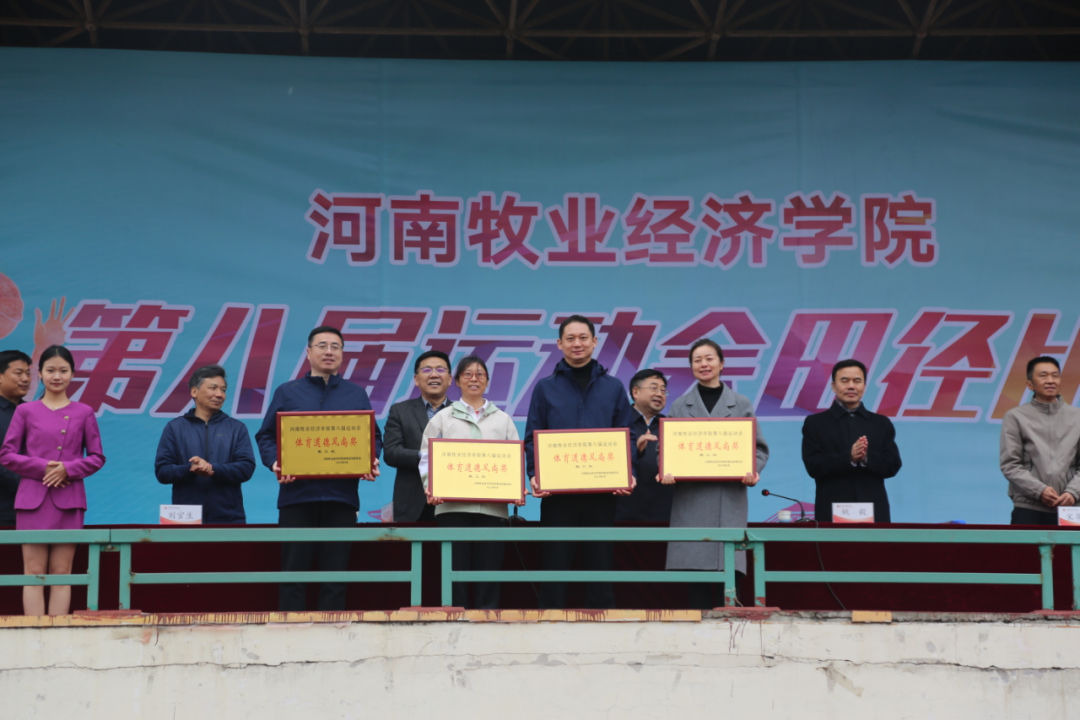 4月21日下午,1066vip威尼斯官网第八届运动会胜利闭幕。校长罗士喜、校党委副书记李俊杰、副校长姚毅出席闭幕式,相关职能部门负责人、各学院师生、运动员代表参加闭幕式,闭幕式由李俊杰主持。总裁判长、体育部主任王国营在闭幕式上宣布了比赛成绩。参会领导为本届运动会的19个获奖单位颁发奖杯和奖牌,为学生组总积分前8名的学院颁发奖金。