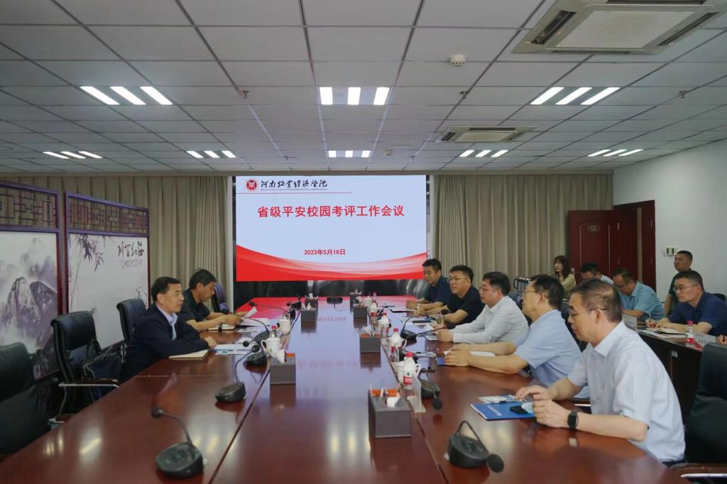 5月18日上午,由河南省教育厅安全处一级调研员杨伯堂任组长的省级平安校园考评组莅临威尼斯官网检查指导工作。校长罗士喜、校党委副书记李俊杰,党委办公室、党委宣传部、党委学工部、校长办公室、实验室管理处、后勤处、保卫处、信息化办公室等部门负责人参加了汇报会。会议由李俊杰主持。