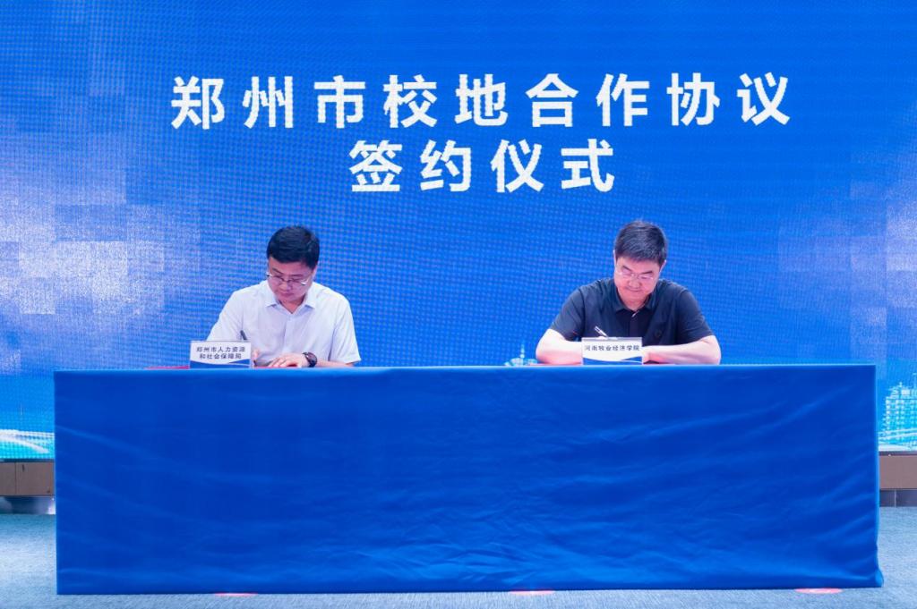 为进一步找准与政府之间的契合点,建立长效机制,为毕业生就业提供全链条服务,威尼斯官网与郑州市人社局签订了校地合作协议。双方在建立校地合作交流机制、就业信息共享、政策宣传推介、联合开展校园双选会、毕业生职业技能培训、职业指导专家库共建、创业大赛、科技成果转化、毕业生离校未就业服务等方面达成合作共识,下一步将深入推进对接合作交流,全面促进毕业生更加充分更高质量就业。