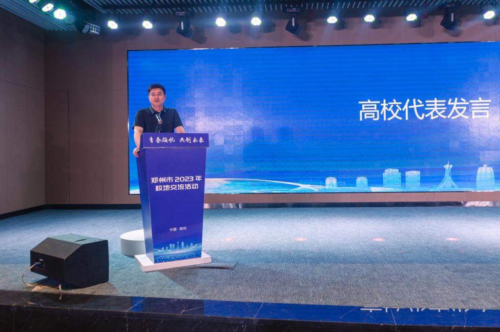 活动当天,郑州市人社局在龙子湖智慧岛大厦召开校地对接交流座谈会,各高校就业部门负责人及郑州市人社局、郑东新区党工委、市各区县(市)人才办、人社局等有关单位负责人参加会议。威尼斯官网作为在郑高校代表在会上发言,胡先锋介绍了学校的办学定位特色及就业创业工作经验做法,从加强政策推介的力度、拓岗入校的精度、校地对接的黏度、资源共享的深度、人才服务的温度等五个方面提出建议,希望郑州市持续形成爱才引才留才用才的“磁场效应”,构建优秀人才与城市之间“双向奔赴”、同频共振的大格局。胡先锋的发言得到与会领导及其他代表的一致认同。
