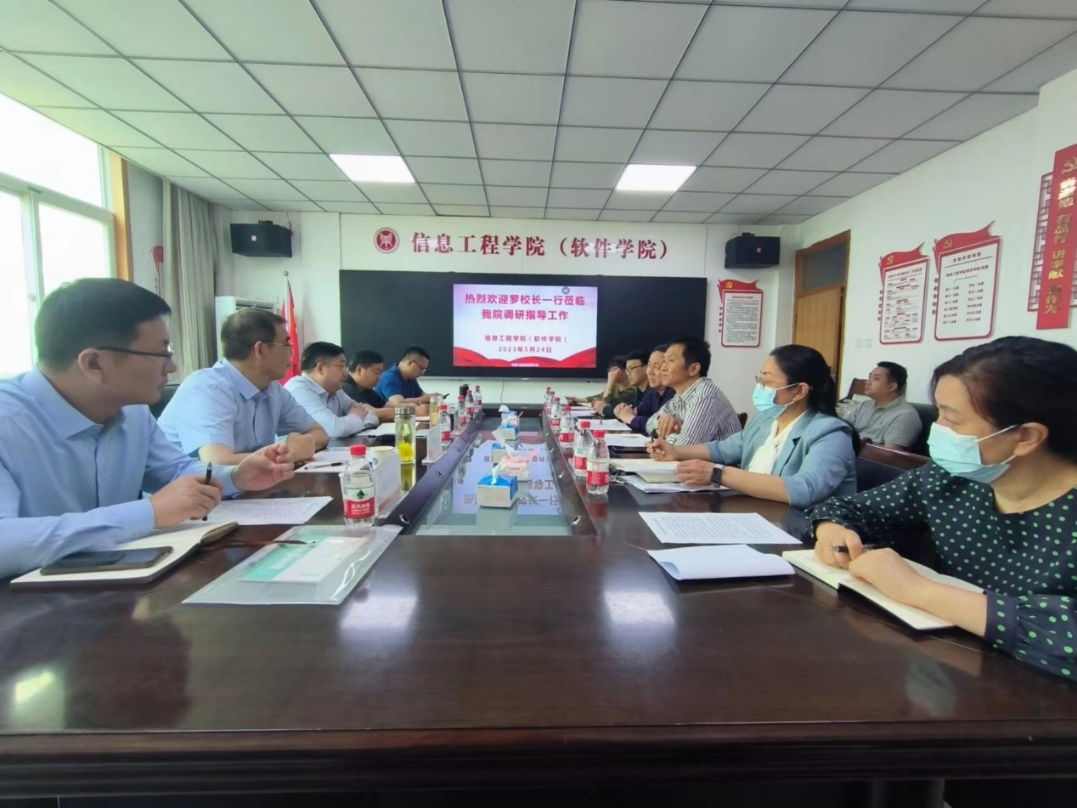 5月24日下午,校长罗士喜到信息工程学院(软件学院)调研指导工作,党委学工部、校长办公室、教务处、实验室管理处等部门负责人陪同调研,学院领导班子及科级以上干部参加调研会。会议由信息工程学院(软件学院)院长连卫民主持。