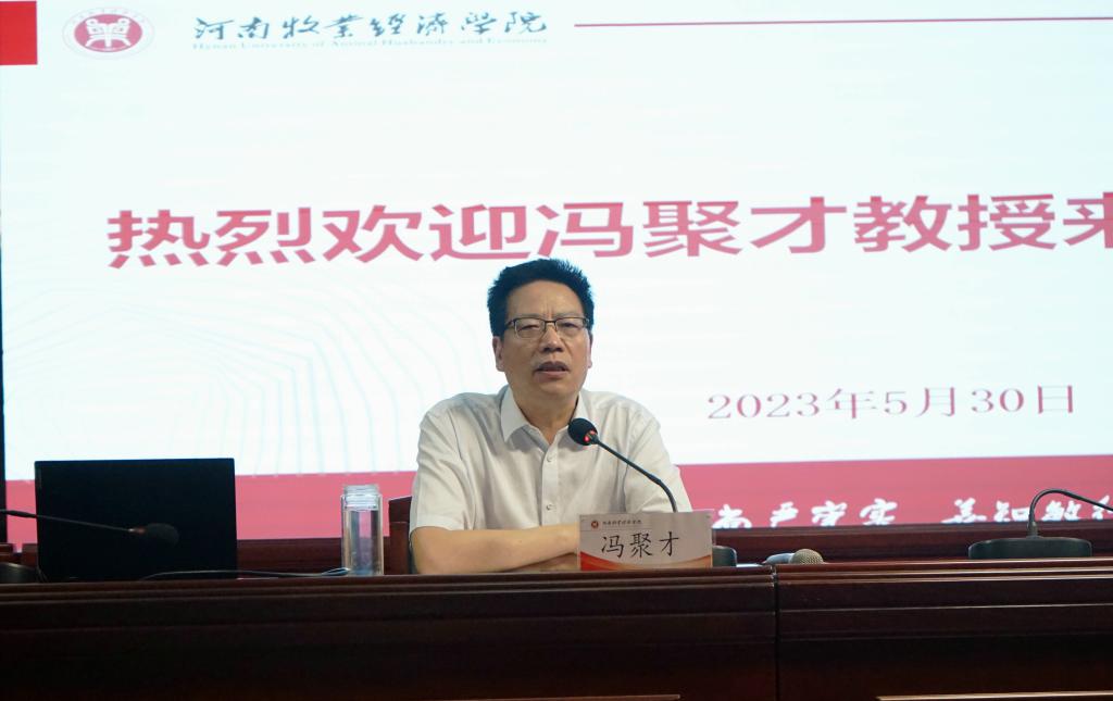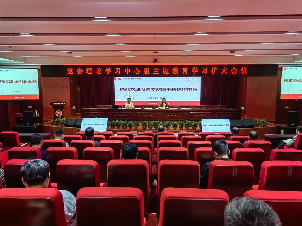 为全面学习贯彻党的二十大精神,深入学习领会习近平总书记关于中国式现代化的重要论述,5月30日下午,学校在图书馆一楼报告厅召开党委理论学习中心组扩大会议,特邀郑州大学马克思主义学院冯聚才教授作专题报告,校党委理论学习中心组成员、学校副处级以上干部参加学习,会议由党委委员、宣传部部长吴静主持。