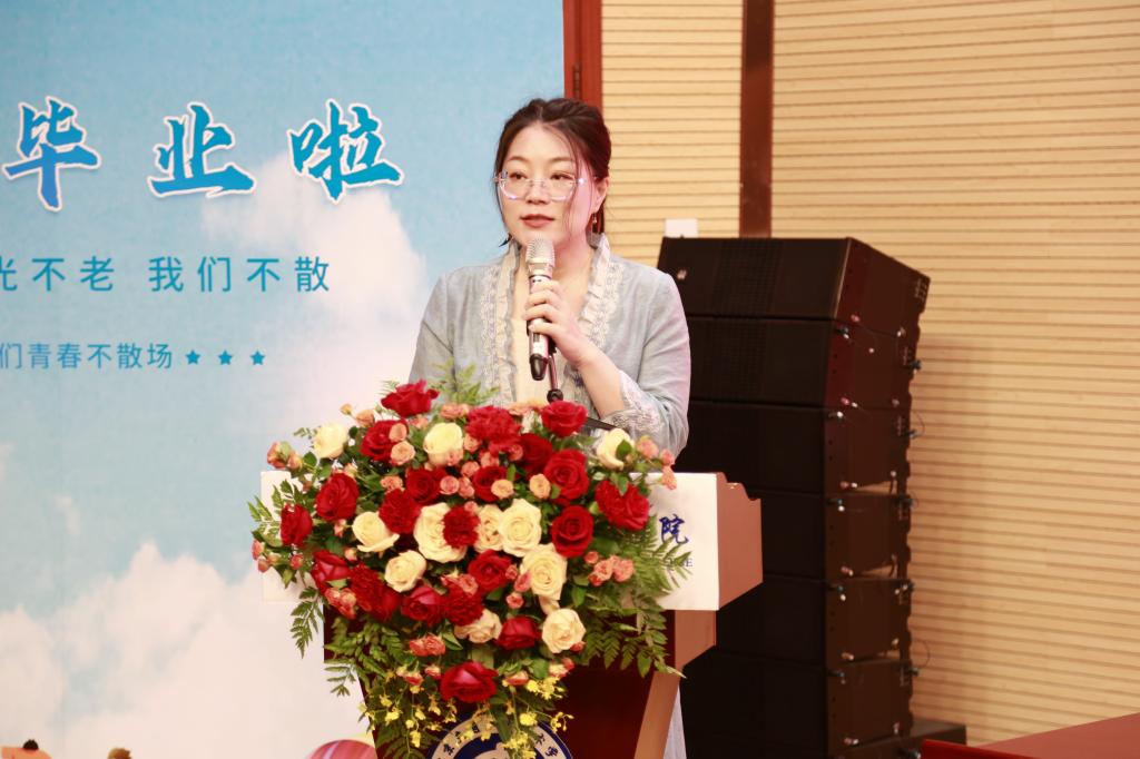 任课教师代表高润老师向圆满完成学业的莘莘学子们表示最热烈的祝贺,并对毕业生们提出了三点希望和嘱托:开阔心胸,志存高远;开拓进取,持续学习;正视挫折,勇于挑战。祝愿毕业生们前程似锦。