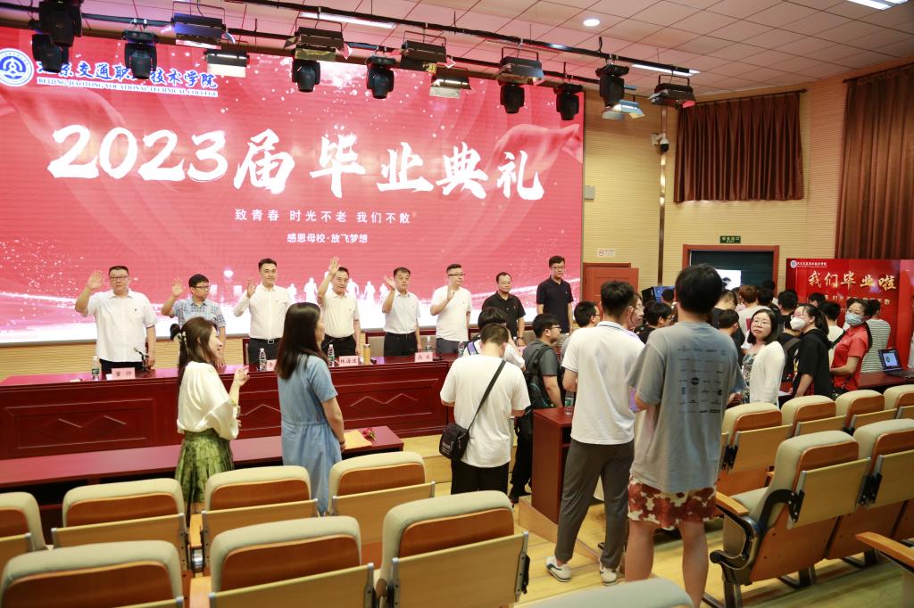 6月30日,beat365vip官网登录入口2023届毕业生毕业典礼在报告厅隆重举行,学院党委书记、院长林海波,党委副书记、副院长李大泳,党委委员、工会主席高波出席,系部负责人,任课教师代表,班主任老师及全体2023届毕业生共同参会。