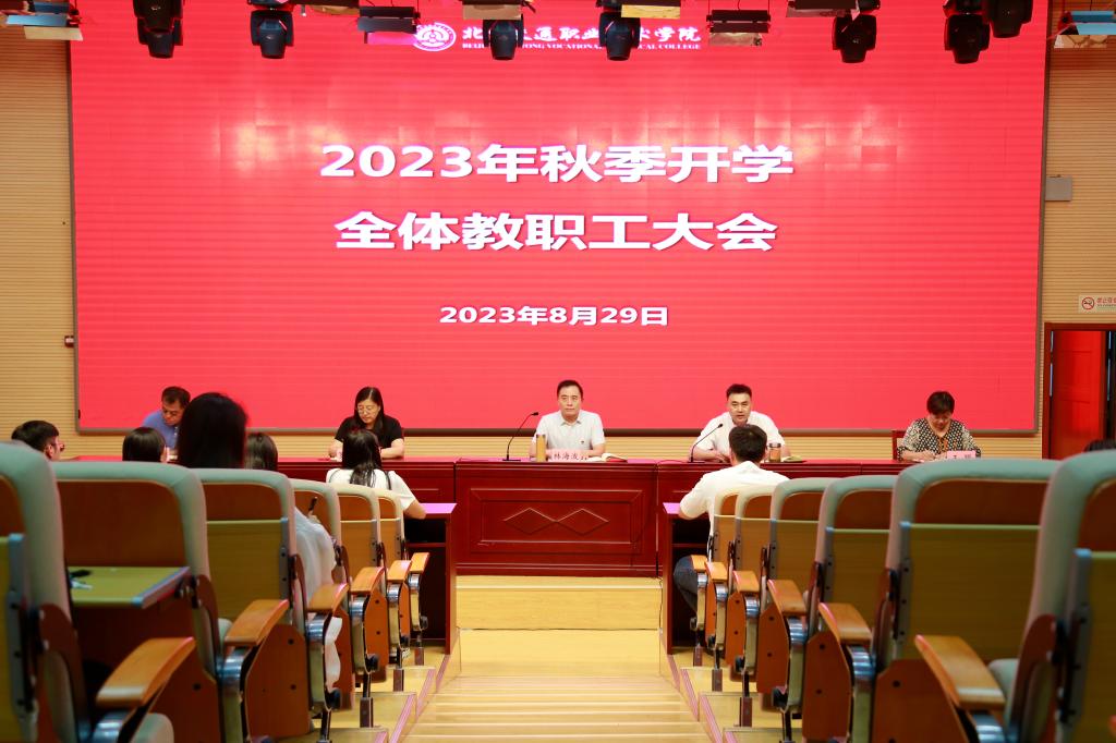 8月29日,beat365vip官网登录入口2023年秋季开学全体教职工大会在报告厅举行。学院党委班子成员出席会议,全体教职工参会。会议由党委副书记、副院长李大泳主持。