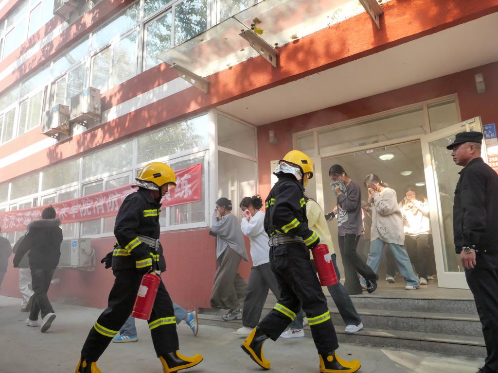 演练模拟学生宿舍楼发生火情。演习当日,随着王颖副院长一声令下,消防应急疏散预案立即启动。宿管员发现火情后迅速上报,中控室同步响应,疏散组组织学生沿安全通道有序撤离,灭火组迅速使用消防器材控制火势。在模拟浓烟环境中,同学们掩住口鼻、弯腰低姿,快速转移至室外安全区域。微型消防站队员同步搜救滞留人员,警戒组维持现场秩序。整个过程反应迅速、配合紧密,在规定时间,所有人员安全疏散,演练顺利结束。
