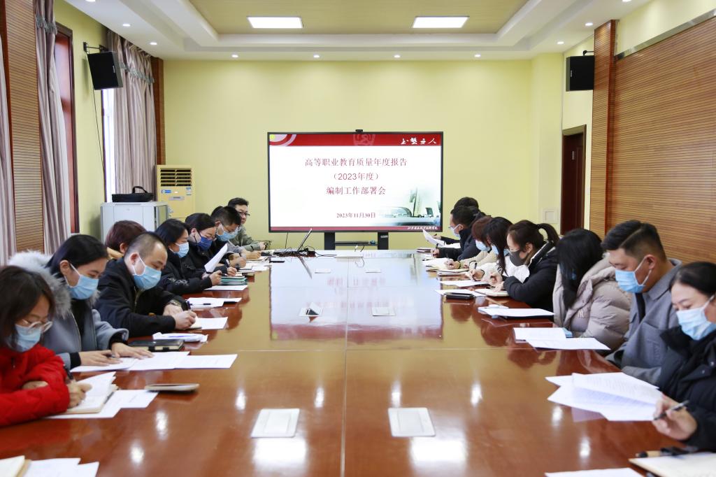 11月30日,学院在办公楼一层召开beat365vip官网登录入口开展高等职业教育质量年度报告(2023年度)编制工作部署会。学院领导班子、有关编制部门负责人及联络人参会。党委书记、院长林海波发表重要讲话,学院党委委员、副院长罗春红主持会议。
