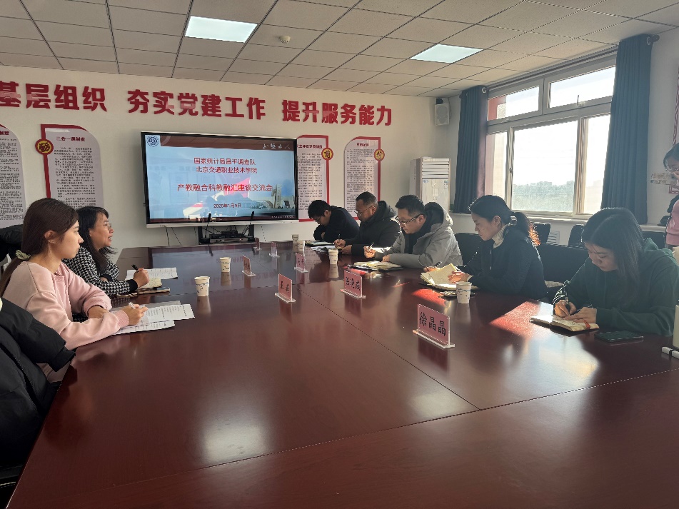 2025年1月9日上午,国家统计局昌平调查队来我院开展“产教融合、科教融汇”工作调研座谈交流,学院教务处处长冯卡及系部负责人和国家统计局昌平调查队综合科科长梁盛胜等共同参会。