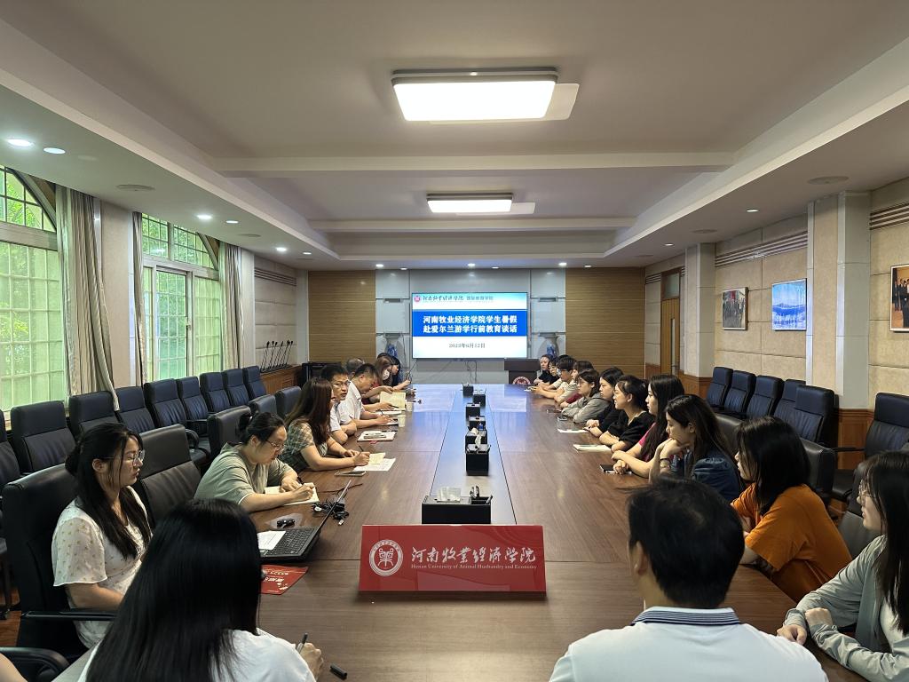 6月12日下午,国际教育学院在英才校区教学办公楼113会议室举行学生暑期赴爱尔兰游学行前教育谈话会,国际交流与合作处处长赵建华、国际教育学院院长胡晓波出席会议,国际教育学院科级以上干部及暑期游学全体师生参会,会议由胡晓波主持。