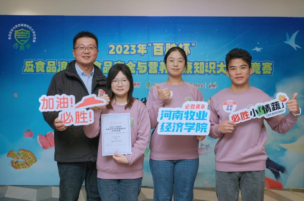 11月9日,2023年“百胜杯”反食品浪费暨食品安全与营养健康知识大学生竞赛河南省分站赛决赛在郑州大学举行。食品与生物工程学院学生徐婉萍、崔田玥、康清友在线上初赛阶段从全省有21所高校3100多名学生中脱颖而出,代表学校参加河南省分赛站决赛,与来自郑州大学、许昌学院、河南工业贸易职业学院的选手同台竞争,经过激烈角逐,荣获季军。