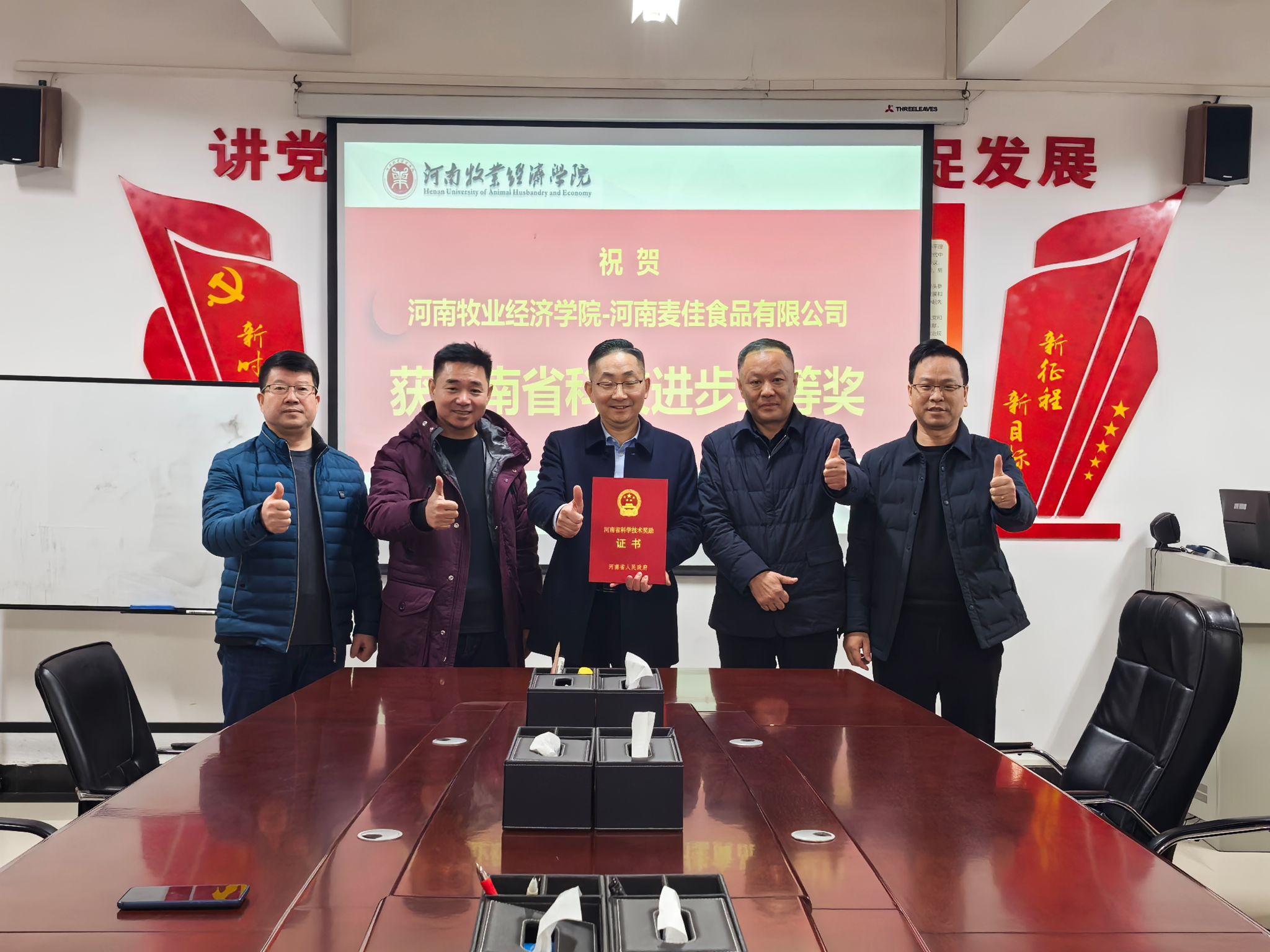 会上,邹建详细介绍了学院在畜产品、预制菜及生物工程等领域的科研进展和教学成果。双方就畜禽副产物的深加工技术、生猪屠宰的现代化流程以及新产品的研发与创新进行了广泛而深入的讨论。期间,邹建将双方联合申报的河南省科学技术进步二等获奖证书转达张志良。这一荣誉不仅是校企深度合作的见证,也是对河南麦佳食品有限公司在科技创新方面所做努力的肯定。