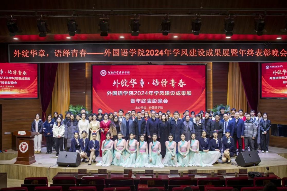 外绽华章,语绎青春。1月7日,外国语学院在龙子湖校区一号教学楼合100举办2024年学风建设成果展暨年终表彰大会。外国语学院领导班子,杰出校友和师生代表近300人欢聚一堂,共同见证2024年学院发展成果。师生通过学院视频号直播观看大会实况。